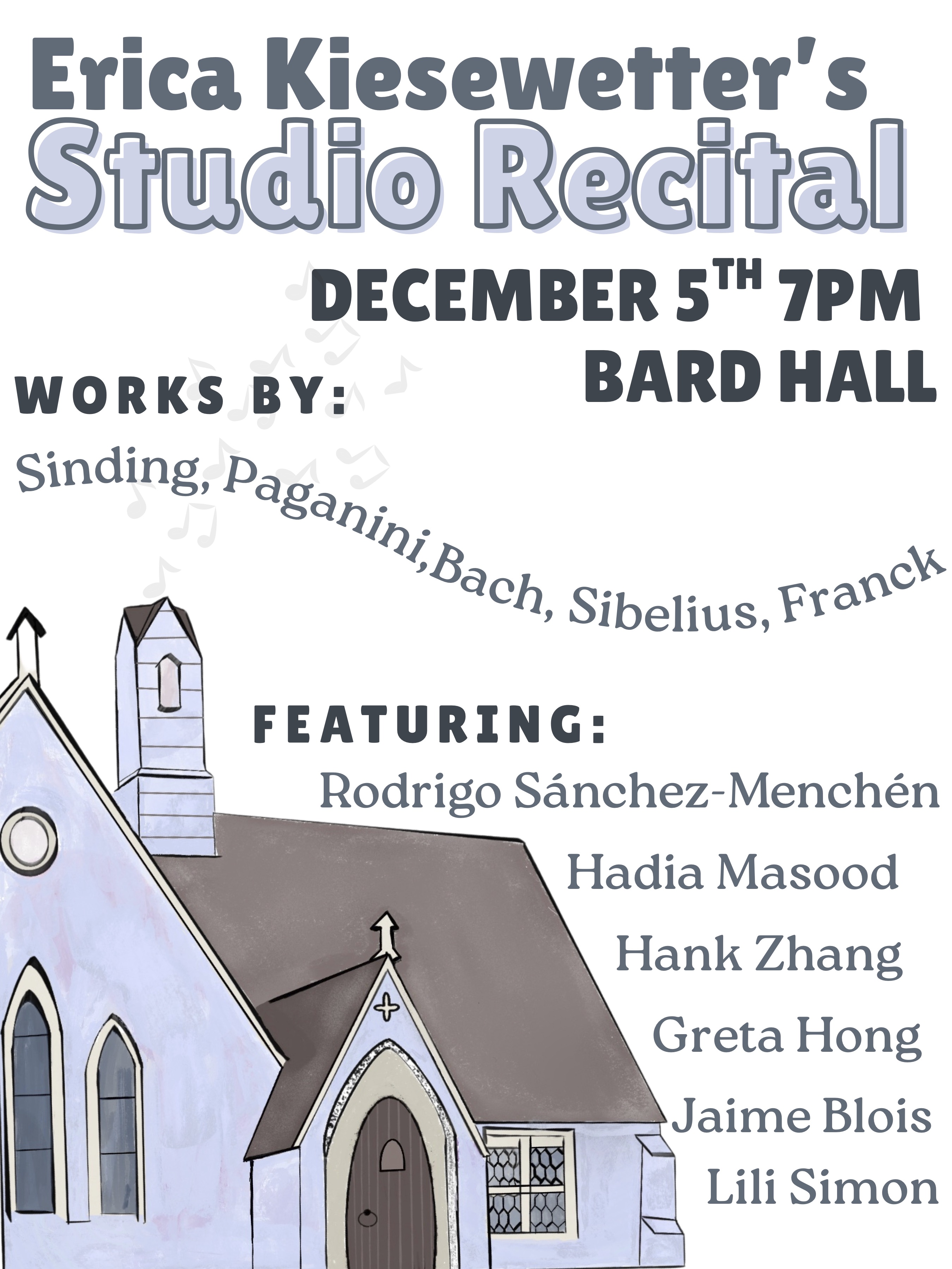 Bard Hall7:00 pm – 8:30 pm EST/GMT-5 Join us for a studio recital.